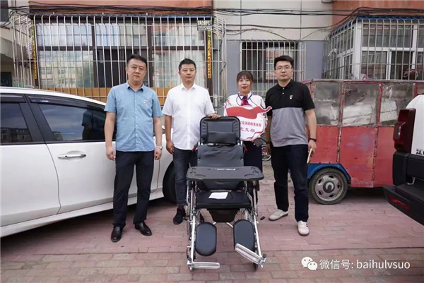 7月23日下午,黑龙江百湖律师事务所党支部开展帮扶困难家庭活动,为龙凤区困难家庭姜某某送去一辆他急需的轮椅。百湖律师事务所主任辛志勇、党支部书记刘煜及三名支部成员参加了活动。