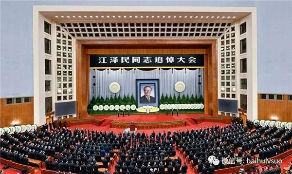 12月6日,中共**、**人大常委会、***、**政协、**军委在北京人民大会堂隆重举行江泽民同志追悼大会。中共**总书记、**主席、**军委主席习近平在追悼大会上致悼词。