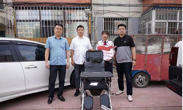 其中2022年7月23日,百湖律所党支部开展帮扶困难家庭活动,向龙凤区困难家庭姜某捐赠轮椅一台。捐赠活动中我们了解到姜某是一位残疾的单亲父亲,除了上学的孩子外,还有高龄的母亲需要赡养。几年前因姜某脑出血需要看病、治疗,使不富裕的家庭雪上加霜。因家庭生活拮据,姜某平日只能依靠家人在小范围内进行活动。收到百湖律所党支部赠送的轮椅后姜某热泪盈眶地表示“我终于不用每日都困于家中,可以一个人随时出门看看夏天了。”