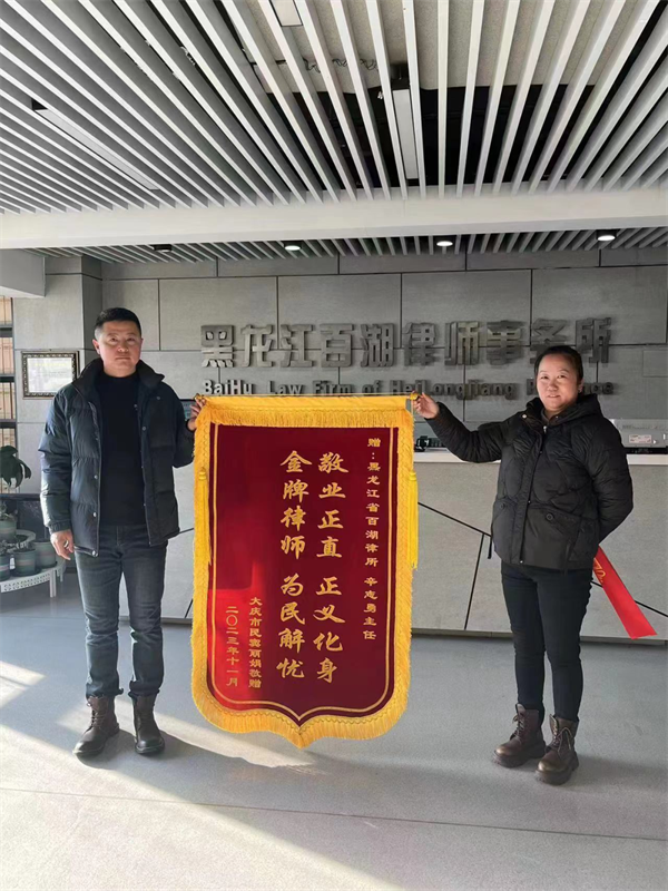 锦旗既是荣誉也是动力,在新的一年里黑龙江百湖律师事务所也将继续以更加饱满的热情投身社会主义法治**建设,为当事人提供优质、**的法律服务,以做党和人民满意的好律师为*高职业追求,在推进中国式现代化建设中贡献自己的力量。