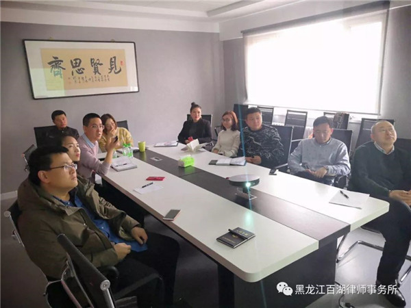 黑龙江百湖律师事务所于2019年1月31日主要针对劳动合同、辞退解雇、工伤事故、员工权益、劳动保险等方面开展了律师业务培训,并且在培训过程中进行了疑难案例的讨论以及同类型相似案件的交流。